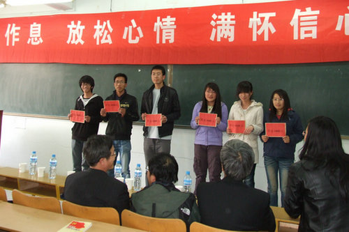 王谦源院长宣读了理学院2010届毕业生考研表彰名单,对第一志愿报考365完美理学院并考取的学生进行了奖励,每人发放奖金1000元。我院计科专业的韩道平、数学专业的马池艳、李杰、孙晓峰、王茂林、丛怡六名同学获得该项奖励。