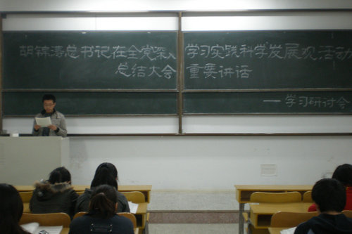 4月28日晚,商学院学生党员在2教207教室集中学习胡锦涛总书记在全党深入学习实践科学发展观活动总结大会上重要讲话精神,此次活动是商学院“巩固学习实践活动成果,推进学习型党组织建设”学生党员主题教育系列活动之一,党总支李晓辉老师参加了集中学习。