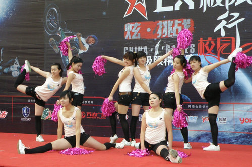 活动在主持人的激情演讲中正式拉开帷幕。此次活动共分六个环节:乐队比赛、问答及极限表演宣传、啦啦操比赛、有奖问答、街舞比赛、颁奖。来自滨海学院的新元素乐队与红领巾乐队给我们带来了《信念》等四首摇滚歌曲,使现场气氛异常热烈。接下来极限运动选手们给我们带来了自行车表演,他们轻松自如地骑着自行车表演着各种惊险的动作,将整个大赛推向高潮。管理学院、艺术学院、理学院、通信学院四个学院表演的啦啦操,她们的舞姿激情澎湃,充满活力。街舞比赛选手也不甘落后,针锋相对,让观众们目不暇接。在有奖问答环节,同学们争相抢答,完全融入了比赛氛围,答对的同学也获得了特步提供的丰厚奖品。