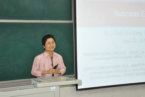 4月25日下午,美籍华人黄吴金洵博士(J.Ruth Wu-Wong PH.D MBA)在二教420教室作了题为“商业道德(Business Ethics)”的学术报告。精彩的报告吸引了众多同学前来倾听,管理学院党总支书记王新、院特聘教授陈大琮夫妇等也参加了本场报告会。