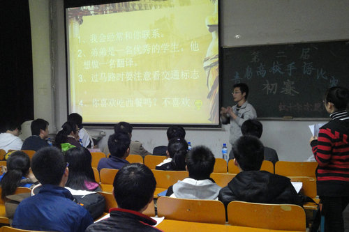 此次比赛共有11名选手参加,比赛内容包括对词语和句子的翻译,要求参赛者在规定的时间内完成。全部参赛者都尽自己最大的努力去争取好成绩,最后刘泰平同学凭着出色的表现荣获一等奖,陈球乐和时红亮获得二等奖,另外这三名同学将代表学校参加青岛市大学生手语赛复赛。比赛后王建民老师对本次比赛做了点评,对比赛中参赛者出现的错误进行纠正并对参赛者提出新的要求。