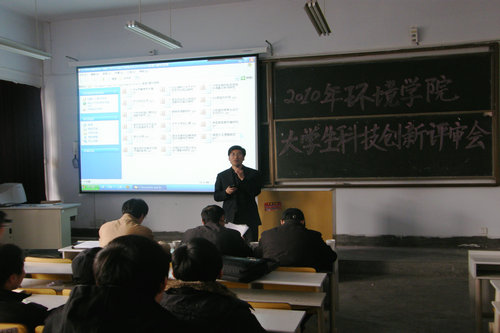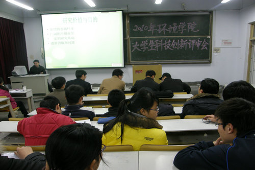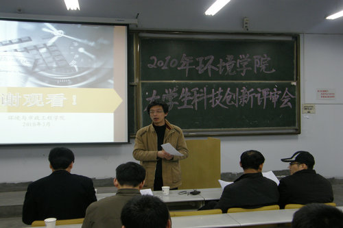3月23日下午4点,2010年环境学院大学生科技创新立项评审会于一号教学楼206阶教室举行。党总支副书记王雄、副院长周恩泽、给水排水工程教研室主任周利、环境工程教研室主任李捷参加了此次评审会。大会由环境学院团总支书记何云峰主持。