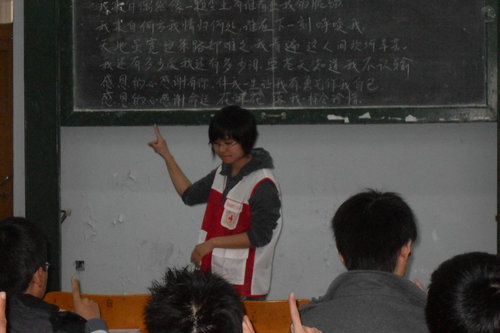学习手语可以让我们更好与聋哑人交流,让我们走进他们的世界。红十字志愿服务团的志愿者们正是本着这样的目的,开办手语班,服务社会,帮助残疾人。 (机械学院高鹏飞)