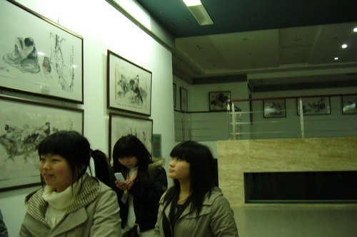 接下来同学们在二楼参观了明清时代名家的书画作品。齐白石大师画的虫鱼,极为精细,“妙在似与不似之间”;吴作人以“法由我变,艺为人生”的艺术观,循着“师造化,夺天工”的创作道路,继承和发展传统,为“中国水墨画”的开拓了新的风貌 ……这些优秀书画作品将传统文化展现出来,充分表现了中国书画的气韵生动,“画有尽而意无尽,故人各以意运法,法亦妙有不同”,大师将其人物的神态刻画的惟妙惟肖,使同学们叹为观止。