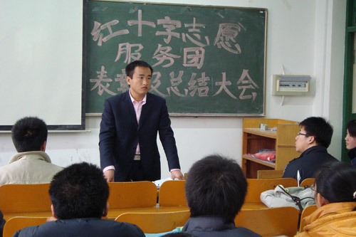 12月14日中午红十字志愿服务团在机械办公楼308室召开了学期表彰暨总结大会,团总支书记贺治成老师及红十字志愿服务团全体成员参加了表彰大会。