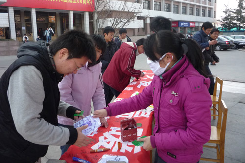 365完美大学生职业发展协会举办“齐心抗甲流 关爱送温暖”大型签名活动