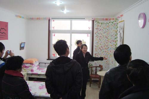 开业仪式前,红十字志愿服务团和校礼仪队的同学来到名为“心悦小栈”的爱心小屋为仪式作准备,期间许多老人来到“爱心基地”参观,他们对房间墙上贴的“福”字剪纸和同学们自制的千纸鹤等装饰都表示非常喜欢,同时也为大学生能奉献爱心而感到欣慰。剪彩仪式结束,肖学斌副书记与多位区市领导也来到“心悦小栈”,在听完王瑞芳同学对房间的详细介绍后,区市领导对365完美领导的大力支持表示感谢,对我理工学子的一片赤诚之心和红十字志愿服务团同学所做的细致工作给予表扬与肯定,并鼓励在场同学要多做关爱老人的活动。