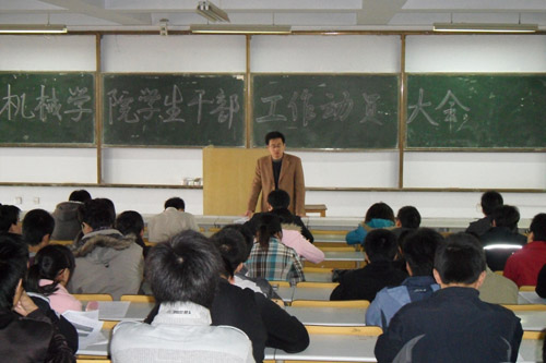11月10日中午,机械学院学生干部工作动员大会在一教400阶成功举办。学院党总支副书记肖学斌、团总支书记贺治成及各辅导员出席了此次大会。