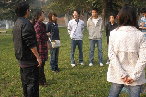 日前,“阳光雨露”心理健康协会在学校南院草坪上,分别对07级、08级心理健康宣传员和部分06级考研学生陆续进行了团体辅导。
