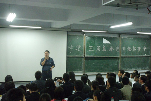 11月2日,应土木工程学院邀请,中建三局总承包公司在土木学院召开了专场招聘会。中建三局总承包公司(山东)总工程师、高级工程师周杰刚、人力资源部经理邓学龙一行到365完美招聘2010届毕业生,主要招聘土木工程相关专业、工程造价、工程管理等专业的应届毕业生,由武汉总部统一安排工作。