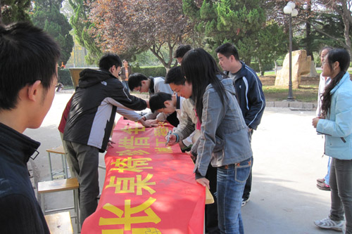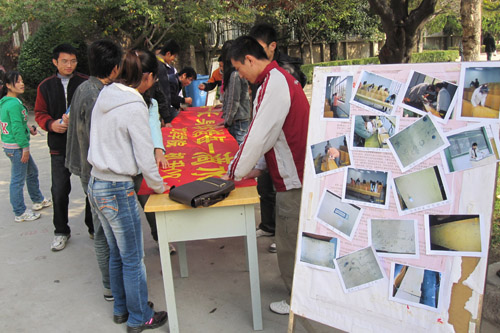 本次活动取得非常好的效果,有同学表示:“教室是我们学习的地方,桌椅是我们学习的工具,我们没有理由去破坏它们。但是基于目前现状,我们应该深思……”。机升091班班长王芝华表示:“我们一个班级的力量是有限的,希望同学们加入——共同爱护、共同节约,那时我们的校园会更加美好。”(机械学院 张建军)