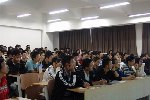 夏教授从“培养创新思维的意义,培养创新思维的障碍和培养创新思维的途径”三个方面展开论述。夏教授指出创新思维是一种亟待开发的重要的智力资源,是人的水平、素质的重要体现,是学习、工作取得成功的基本条件,是协调各类关系的重要手段,是人生幸福的重要主观条件,同时创新思维可弥补专业思维的不足。夏教授在“培养创新思维的障碍”的问题上,指出创新思维的障碍有传统的思维方式、思维定势和文化品质,其中文化品质体现在人格发展、气质特征、关系处理、教育、方法、语言、文字和宗教方面。夏教授在“培养创新思维的途径”的问题上,指出同学们应面向实践,深入生活,增加知识积累,优化知识结构,学习哲学,掌握辩证思维方法和科学的精神培养,同时应加强交流和实际训练。最后,谭院长引用江泽民主席的“创新是民族进步的灵魂,是国家发展的不竭动力”做为结束语,希望同学们尽快适应大学生活,不断树立新的目标,积极开发自己的创新思维和意识,优化思维方式,实现自我的完善和成长。