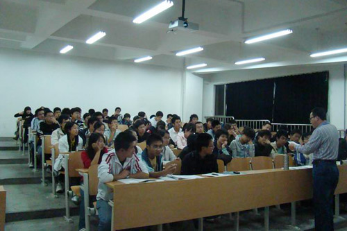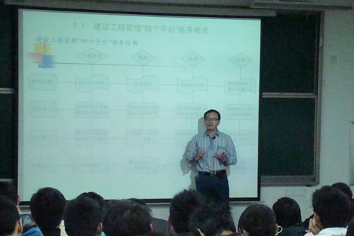 座谈会开始,张老师要求大家以文字的方式提出自己在国工专业各个方面的问题。随后张老师在工程管理和国际工程项目管理的培养、培养目标就业去向、执业资格认证、09年考研就业情况四个方面各有侧重的给大家做了介绍。鉴于同学们比较关注就业和考研,张老师介绍了这两个方面的情况:随着国际化的影响越来越大,各建筑公司不断开拓海外项目,国工作为工程管理的新方向日渐受到青睐;除了海外市场,国工专业在国内的就业市场也相当广泛,如设计单位,建筑施工单位等;本专业在考研方面有很多方向可以选择,同学们可以根据自身情况和兴趣进行选择。其次,在国际国内的相关工程管理执业资格认证制度和择业导向,建设工程管理“四个平台”体系即工程技术平台、经济平台、管理平台、法律平台,国工专业学习方法和建议,专业发展展望等细节方面给大家一一做了讲解。最后,张老师还耐心的回答了同学们提出的各种问题。