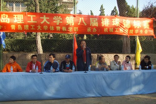 体育教学部主任宋刚宣布第八届排球锦标赛开幕,并为表演赛进行了开球。机械学院团总支书记贺治成致开幕辞,他首先向本届排球比赛的顺利开幕表示热烈的祝贺,向参加比赛的裁判员、教练员、运动员以及全体工作人员致以亲切的问候,并殷切地希望全体运动员要发扬更高、更快、更强的体育精神,顽强拼搏,奋力争先,以高昂的斗志,高超的球艺,赛出友谊,赛出风格,赛出水平;同时,也希望各代表队领队、教练和全体工作人员要坚守岗位,积极配合,为搞好本次比赛作出积极的贡献。随后,裁判员代表于健老师和学生代表王鹏飞分别进行了宣誓。最后,机械学院拉拉队进行了精彩的表演。