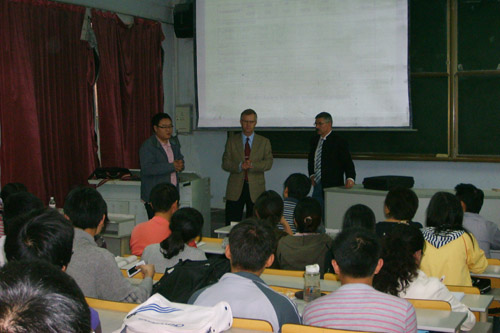 下午4点,丹尼尔院长给土木学院06级和07级本科生详细介绍了马德堡斯通达尔应用技术大学的办学情况,欢迎我院学生本科毕业后到该校攻读硕士学位。15日上午,双方就合作交流的细节进一步商讨,明确了第一批交换生的选拔条件、程序和时间计划表。除了合作办学之外,双方还深入交流了科研方面的合作,初步明确了两个科研合作意向。
