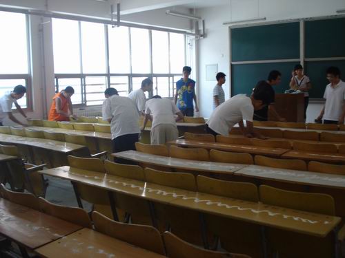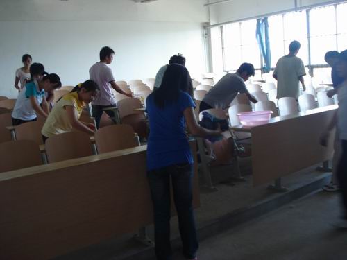 本次大扫除活动主要包括清理地面杂物,擦洗桌面痕迹。通信学院以班级为单位分别对一楼的各个教室进行打扫,同学们齐心合力,经过一个小时的努力,教室焕然一新。