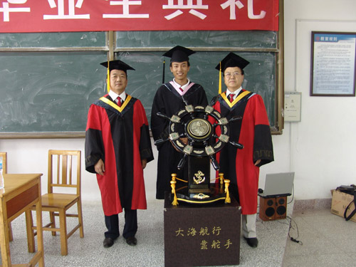 整个典礼气氛庄重热烈,身穿学士服的毕业生们意气风发,脸上写满了对即将步入的社会的向往和对美好未来的无限期待,透露出自信和敢于迎接挑战的勇气。典礼首先由毕业生代表、05级社工2班班长吴晓龙同学向学院赠送纪念品,表达他们心系母校和学院发展之情。谭院长代表学院向毕业生们送出了祝福,他对毕业生为学院发展做出的贡献表示了感谢。谭业庭院长说,大学毕业不仅是大学生涯的结束,更是下一人生阶段的开始,希望他们牢记校训和院训,更加努力的学习和工作,创造出更大的成就,取得自己的辉煌。随后,谭院长和王书记为毕业生们颁发了毕业证书,对他们顺利完成学业表示祝贺,并祝福他们在未来取得更大的成绩。领导的谆谆教诲和殷切希望让毕业生同学们满怀自信地走出校园,创造更大的成就。