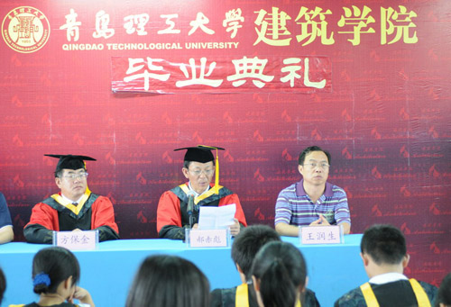 首先,由建筑学院常务副院长郝赤彪发表讲话,他代表学院向学业有成,即将告别学校,踏上人生新征途的325名毕业生表示衷心的祝贺和良好的祝愿!另外,他还向毕业生提出了三点希望:一、希望大家爱岗敬业,踏实工作,勤勤恳恳,历练心志,在工作岗位上建功立业。二、希们大家勤于学习,勇于实践,尤其是一些将要继续攻读更高学位的同学,更要不断提高自身素质,努力成才。三、希大家走出校门之后,继续关心学校和建筑学院的建设和发展,为学校、学院更加美好的明天献计献策。