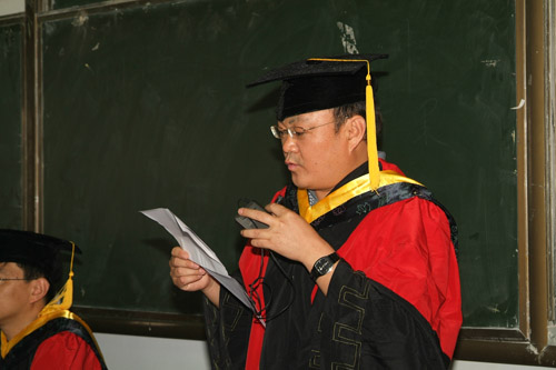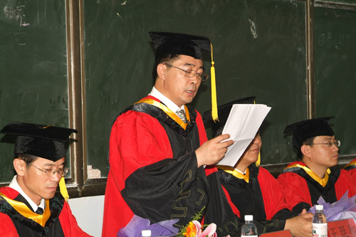 教师代表李长河教授发言,对毕业生顺利完成学业表示祝贺,并对毕业生们寄予了很高的期望,一方面,希望同学们要有“志在追日”的精神,要求大家永远满怀自信,作好人生事业的长远规划,在工作中学会多思考,学会合作与竞争,学会彼此信赖,学会如何不断地超越自己;另一方面,要有“行求唯实”的态度。大学毕业既是一个终点又是一个起点,同学们在学校学到的理论知识能否经得起实践的检验,这就需要每位毕业生继续不断地去充实自己。