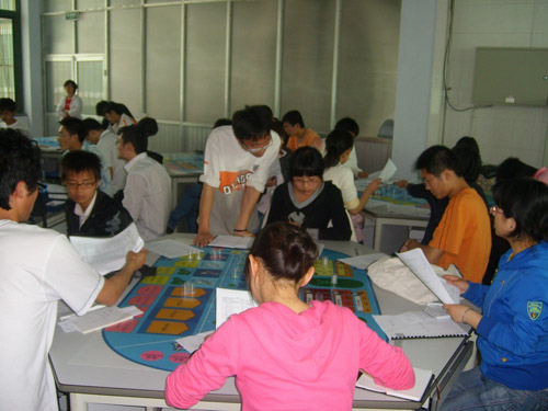 上午9:30,培训正式开始,肖迪经理首先介绍了企业沙盘模拟是什么,接下来,她通过PPT课件以及手工沙盘一步一步帮助同学们了解沙盘模拟的各环节及经营流程,边讲解边操作,各参赛队的学生们认真聆听,按照讲解仔细操作,不时进行讨论。在讲解完基本的手工沙盘和操作流程后,肖经理要求各队进行一个年度的手工模拟,按照各项规则,各队展开了积极热烈的讨论,制定各项决策并慢慢模拟推演,12点,第一年度推演完毕,培训告一段落。下午2点,培训继续进行,肖迪经理要求各队将上午手工推演的第一年度报表上交,并连接网络,她详细讲解了电子沙盘模拟的内容和操作流程,要求各队将第一年度各项数据通过网络提交,并对各队的经营和操作进行了认真的点评,接下来各队参加竞标并开始第二年度的模拟经营。晚上7点半,在各队最终提交第二年度数据前,肖经理又通过课件详细给大家讲解了企业沙盘模拟中应重点运用和关注的知识。最后,肖经理对各队第二年度的经营情况进行了点评,各队队员也分别谈了此次培训的感受,感觉收获颇多,学到了许多课本上学不到的东西,最后,培训在掌声中结束。