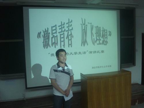 由通信学院学术部举办主题为“激昂青春,放飞理想”演讲比赛于5月25日晚7点在阶教303举行。通信学院辅导员薛腾飞等担任比赛评委。通信学院学生会各部部长担任比赛嘉宾。