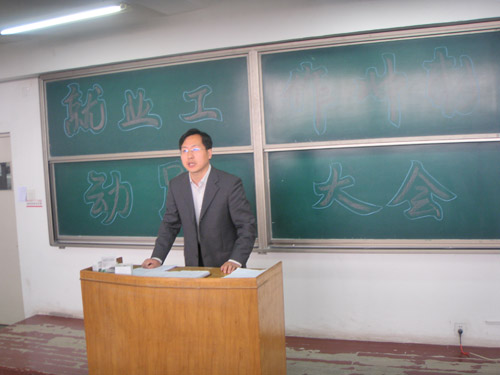 针对今年严峻的就业形势,以及部分毕业生在单位实习却不能及时签约的事实,薛书记结合自己多年的就业工作经验,向广大毕业生分析阐述了当前大学生的就业情况,鼓励在用人单位实习的毕业生把握机会,尽快完成签约手续,要求目前还没有就业意向的同学,充分利用学校和学院发布的每一条就业信息,做好就业准备。