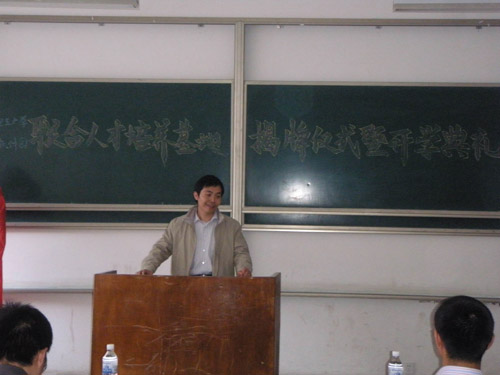 上届学员代表、已经签约北京新思软件的计升062班常志新同学介绍了参加实训的经验,对新一期学员提出了很好的建议。新学员代表、计算061班刘宁代表新学员作了发言。
