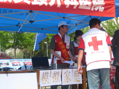 红十字志愿服务团带去了“模拟家庭”品牌活动宣传资料,“模拟家庭”自04年成立以来,倍受社会关注,先后有市、省级多家媒体报道,05年5月中央电视台《新闻联播》节目也予以报道,这项志愿服务活动一直持续到现在。为了让更多的市民了解活动的意义及大学生志愿者的良好风貌,红十字志愿服务团的志愿者以展板、宣传材料、讲述“家庭”故事等多种方式进行宣传,达到了良好的效果。