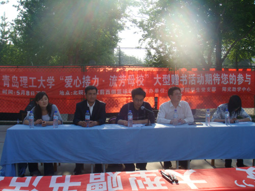 5月8日下午,微风徐徐,花香缕缕。由机械学院学生一支部与阳光助学中心共同举办的以“爱心接力,流芳母校”为主题的大型赠书活动在学校北院西侧篮球场举行。机械学院党总支副书记肖学斌致开幕词,团总支书记贺治成、学生一支部书记张建军等出席活动现场。