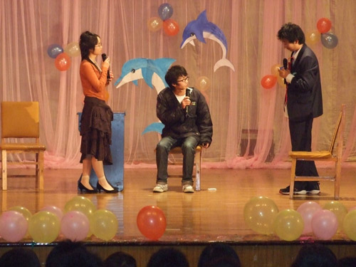 晚会在优美的华尔兹舞曲中缓缓拉开序幕,主持人的真诚话语激起了观众的热情。话剧《我们的花季>》、歌曲二重唱《倒带》、独唱《相信自己》、《劲爆街舞》等节目一一现映,刺激的双节棍表演扣人心弦。吉他弹唱《一生有你》、小沈阳模仿秀《我想当明星》、傣族舞等节目令观众沉醉其中,由学院08级各班长自编自演的现代版《梁祝》更使整个晚会高潮迭起。伴着手语表演《感恩的心》,晚会落下帷幕。晚会结束后,到场嘉宾上台与演员亲切握手并合影留念。