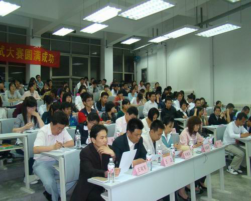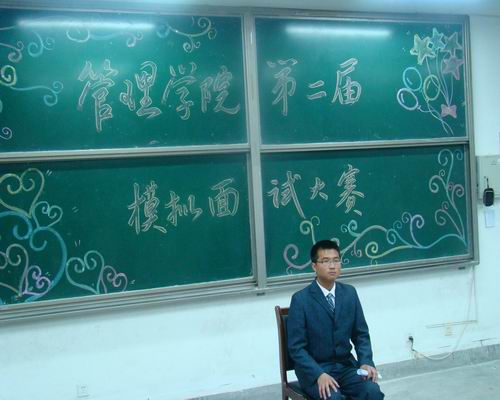 为了提高大学生的面试技巧和就业能力,管理学院从4月25日至5月10日举办了第二届企业模拟面试大赛,本次大赛的决赛于5月10日晚在二号教学楼阶教401室举行。决赛邀请到了青岛土木建工集团人事部经理张鑫源女士、青岛锦绣吉祥商厦董事长王志先生、经理王娟女士、青岛经济开发区城市发展投资有限公司经理王双军先生、中国就业促进会资深教师尹老师、纪纬玲老师担任评委,管理学院党总支副书记申维东、团总支书记于利俊,06级辅导员张忠臣出席了本次大赛并担任评委老师。