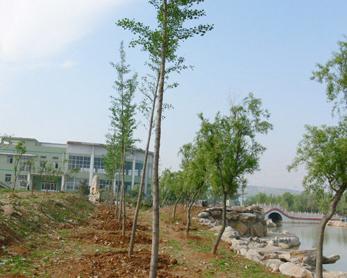4月27日下午,09年应届毕业九个班的314名学生,在校区人工湖东岸栽植毕业纪念树—银杏树。