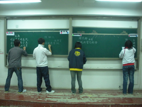 此次比赛艺术学院摘得桂冠,二等奖则由商学院和通信学院荣获,三等奖获奖学院为经贸学院、自动化学院、管理学院。商学院和艺术学院的粉笔字,艺术学院的钢笔字和管理学院的毛笔字分获各单项奖。