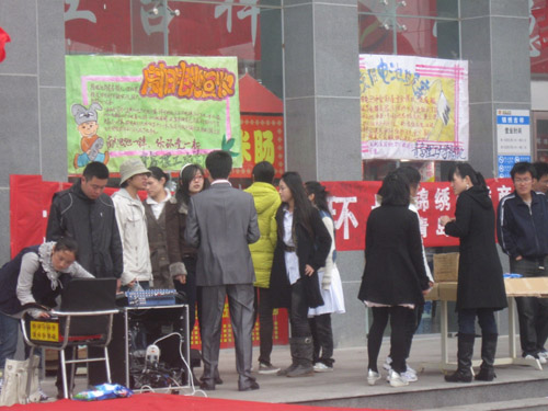 4月19日,由商学院与开发区锦绣吉祥商厦联合开展的“废旧电池回收活动”在锦绣吉祥商厦广场成功举行。