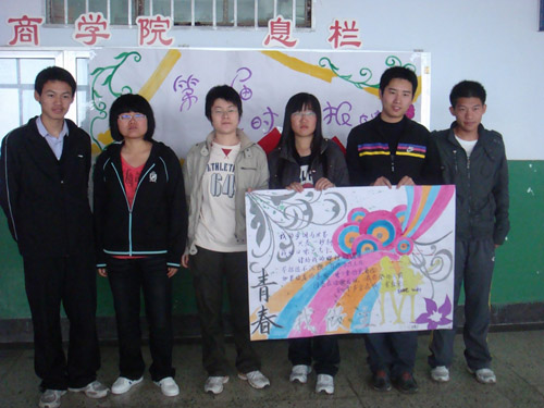上午8:00,参赛的各队成员准时到达了比赛现场。在领到稿纸、绘画用料和毛笔后,各队开始了认真的创作。队员们在比赛中熟练配合、团结协作,展现了良好的团队精神,结合自己对“青春、阳光、和谐”的理解,通过画笔,运用色彩和文字,绘出了一幅幅缤纷绚丽充满着青春风采与深刻内涵的海报。持续了3个小时的比赛于11:00进入尾声。任孔冰、李晓蕾老师对所有海报进行了评价,并号召同学们要珍惜青春,用实际行动书写自己人生美丽的青春画卷。最终,商学院十班获得一等奖,商学院二班获得二等奖,商学院九班获得三等奖。团体协作奖由商学院八班获得,最佳文采奖由会计一班获得,最佳构图奖由六班获得。
