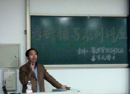 为了给即将毕业的理工学生扫除前进的障碍,指明前进方向,管理学院学生会学术部于4月16日晚七点在二教322进行了考研辅导系列讲座的第二讲,管理学院副院长姜东民博士担任主讲。