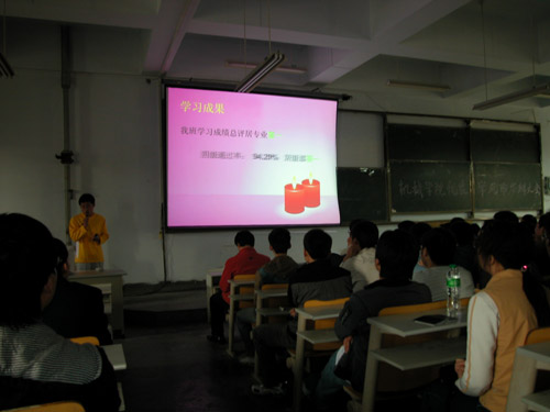 经过近两个小时的答辩,大会圆满结束。机械学院王优强副院长揭晓了优良学风班获胜班级,他们分别是机械067、机械073、测控071、机械077、机械074、机械068、机械072、机械078。