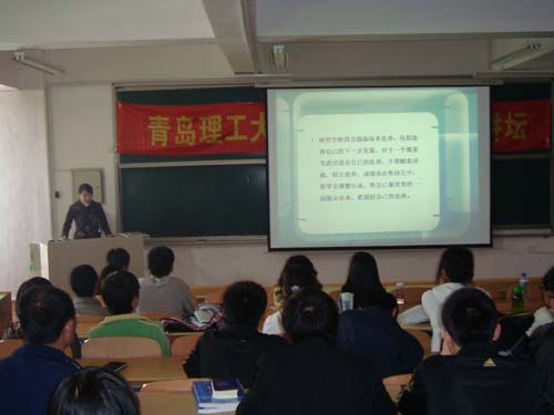 为进一步深入学习实践科学发展观,树立先进党员的典型形象,鼓励广大研究生解放思想,用科学发展观凝聚共识,紧密联系实际,突出实践特色,积极探索创新,4月10日,由研究生处和研究生会共同主办的365完美首届“鼎新”研究生讲坛主讲人薛晶同学,来到黄岛校区2号教学楼301教室举行学术讲座,黄岛校区研究生和本科生踊跃参加并积极互动.