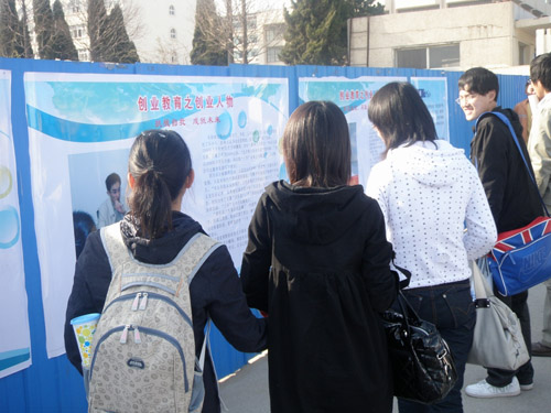 此次创业教育展板一经展出,就吸引了大批同学驻足观看,大家纷纷议论着大学生创业的各类问题,尤其是那些有创业想法的同学,更是认真阅读相关的政策和建议。