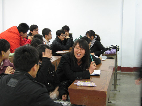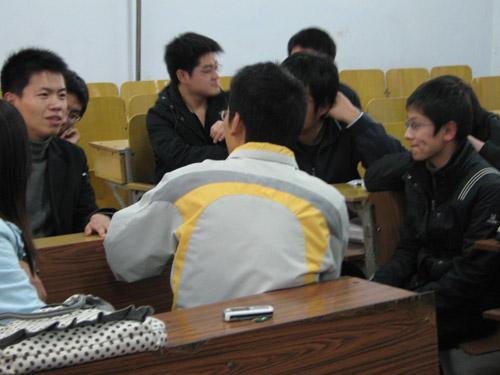 本次交流会邀请到设备专业05级考研分数比较高的孙晓平、王厚帅和马良三位同学。围绕考研与就业的主题,以同学们提问,三位同学作答的形式展开。同学们自主分成了三组,三位同学就考研形势、具体细节、复习经验、总结方法等方面以自己的总结和考研经历向大家做了细致耐心的分析。其中一位学长提到,考研道路是艰辛的,同学们不仅仅要埋头苦读,更重要的是要有一个良好的心态。他提到“不必闻鸡起舞,但求合理分配”的对时间合理安排的积极态度,让同学们十分佩服。现场气氛非常热烈。