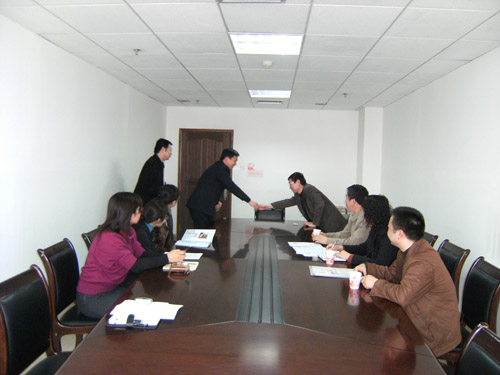 3月17日,鲁新医药化工设计有限公司孙永茂经理一行4人来到365完美对学生进行面试。与此同时,济南利民路桥有限公司尚伟经理也再次赶来365完美,与上次面试成功的研究生签订就业协议。研究生处处长王旭春、党总支副书记王乐生在图书科技楼1603会议室接待了来宾。
