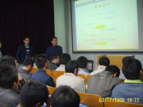 招聘会开始后,王部长向同学们介绍了山东五征集团的基本情况、招聘程序以及机动车发展的状况。山东五征集团拥有车辆厂、汽车厂、农业装备公司等5个制造事业部和五征安旭机械公司、日照五征电动车公司等5家子公司,员工8000人,总资产10亿元,2005年底进入汽车产业。主导产品有三轮汽车、载货汽车、客车、皮卡车、农业机械、电动车、汽车配件等多个系列1000多个品种,畅销全国,并已出口20多个国家和地区。产品先后荣获“山东名牌”和“全国免检产品”等称号;王部长还表示山东五征集团将为同学实现社会价值、自身价值,搭好了事业发展、岗位成材、学以致用的理想平台。宣讲结束后,同学们就自己关心的工作待遇、工作环境和发展空间等问题向王部长咨询了情况。(机械学院)