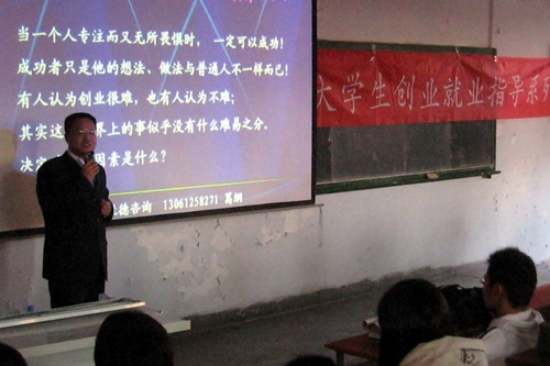 11月27日下午在三阶南教室,应创业指导中心、土木工程学院邀请,青岛兰德企业管理咨询有限公司葛纲总经理为同学们做了一场题为“创业人生”的创业思维培训讲座。
