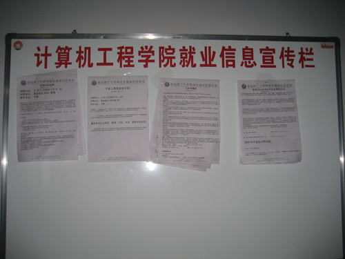 计算机工程学院2009届毕业生共计167人,其中黄岛校区143人,均为本科生,另外四方校区专科毕业生 24人。针对明年学院毕业生人数多,就业形势突出严峻的特点,学院领导高度重视,开学初就成立了以王斌院长为组长的就业指导小组。学院通过组织动员学生参加青软实训、考研等形式,提早做好毕业生的分流工作。进入11月份以来企事业用人招聘信息逐渐增多,针对这一情况,学院除了及时在学院网站上发布就业信息以外,还在毕业班每一个班级设立两名就业信息宣传员,负责就业信息的收集和发布,在毕业生所分布的3个学生宿舍分别悬挂就业信息宣传栏,在学院橱窗专门开辟就业信息发布专栏,使就业信息的收集和发布体系更加健全。