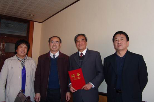 在报告会的最后,谭业庭院长代表人文社科学院向周保章老先生颁发聘书,聘请周保章先生为人文社科学院德育导师。