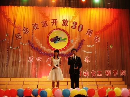 11月5日晚,由自动化工程学院学生会文艺部主办的“纪念改革开放30周年——第四届合唱比赛”在科学会堂成功举行。共有来自07级、08级的11支队伍参加比赛。应邀参加此次比赛的嘉宾和评委有:校团委安晓辉老师、管理学院董兰国、张忠臣老师、计算机学院历建刚老师,以及自动化工程学院有关领导及老师。