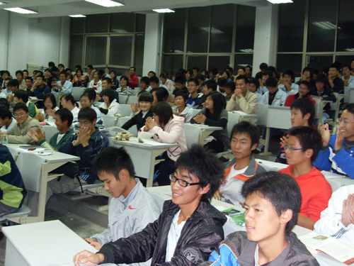 来自05、06、07级的7名优秀学长学姐为08级学弟学妹做了精彩纷呈的报告交流。学长学姐们分别就:如何处理好学习和学生工作的关系,四年大学生活该如何度过才算精彩,如何学好基础课,如何学好专业课等作经验交流。他们结合自己的学习体会,将几年来积累的学习经验和方法作了详细介绍。他们一致认为:大学生要树立明确的学习目标,把学习放在首位。大学的学习方式有着其独特性,在学习的过程中,需要集中精力,真正调动起大脑,尤其要向课堂五十分钟要效益,在课堂上认真听讲,做好笔记。他们还详细介绍了自己通过英语四、六级的学习方法和学习窍门;第二,大学生要有责任感和使命感,有高尚的理想追求,充实而又无悔的度过。他们的精彩演讲博得了在场同学的阵阵掌声。