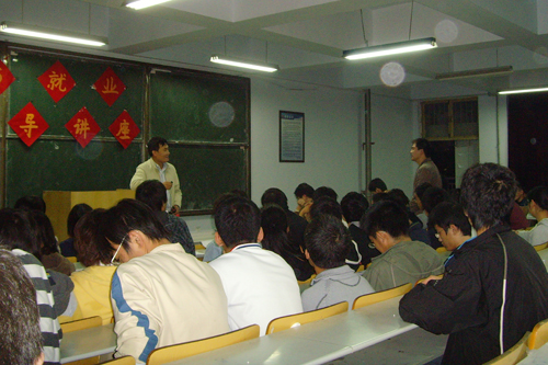 讲座由周老师主持。崔老师首先做报告,他针对该专业及课程系统做了详细的介绍。然后周老师详细讲述了怎样学好专业基础课及主干课。接着李老师帮助同学们分析以后是否要考研及考研的反响,并针对相关问题做了详细介绍解答。老师们的讲解诙谐生动,让困难的问题简单化,同学们听的认真、记得详细,不时回报老师热烈的掌声。最后,周老师总结大会精神,向同学们提出殷切的希望,期望同学们珍惜时间,珍惜机会,为以后工作和学习打下坚实的基础。