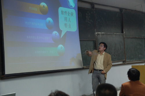 10月13日、14日下午,无锡软件园就业培训承办代表,ATA公司教育业务中心助理总经理孙树童和企业合作部经理王金成,分别在四方和黄岛两校区为理学院05级数学与应用数学专业、信息与计算科学专业、电子信息科学与技术专业的学生,06级数学与应用数学专业、信息与计算科学专业的学生,进行了就业培训宣传咨询会,旨在拓宽学生就业的视野和渠道,为学生提供更多就业机会。