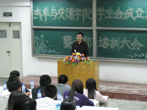 汽车学院党总支书记孙张飞对新一届学生会的成立表示祝贺,对兄弟院校的到来表示了感谢,指出了学生会成员要积极配合学院工作,继续充当好沟通学院与同学之间桥梁的角色,并殷切希望新一届学生会成员能积极努力开展工作,组织好同学们开展活动。
